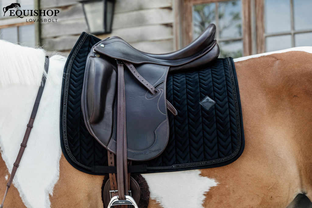 A legjobb anyagokból készült Velvet Pealrs nyeregalátét nem csak a szemnek kellemes, hanem a lovának is.