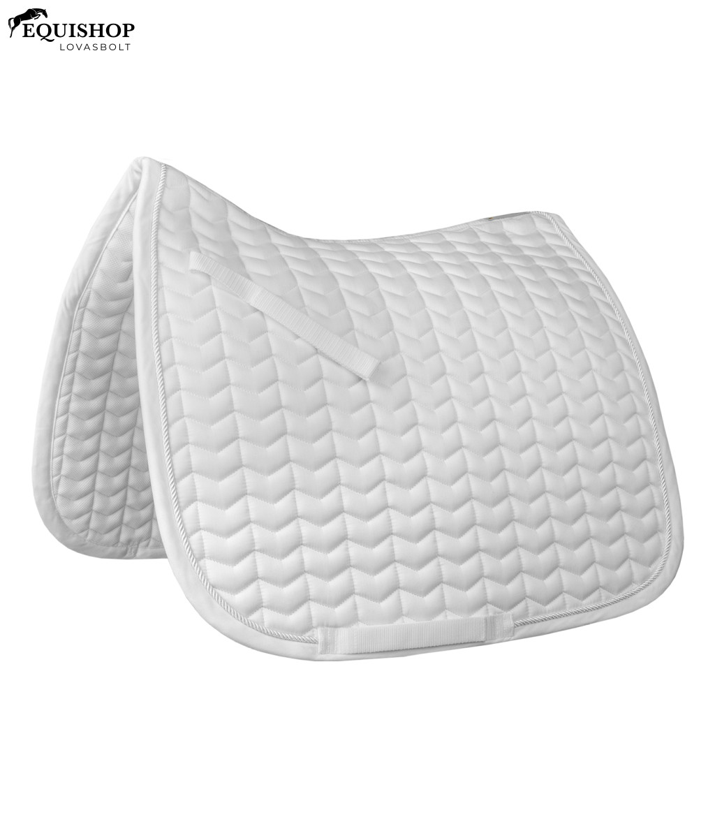 Klasszikus nyeregalátét elegáns és jellegzetes steppelt dizájnnal. A hevederhurkok tépőzárral nyithatók. A bélés kiváló nedvszívó képességet biztosít, míg a 280 g/m² vatelin és a 10 mm-es hab kiváló nyomáseloszlást biztosít. Válasszon egy vagy osztott hevederhurok közül.