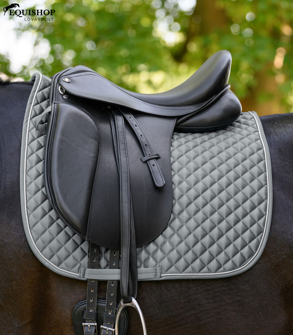 Időtlen nyeregvédő fényes felülettel és fényes szegéllyel. Kiváló légáteresztő képesség és nedvszívó képesség. 15 mm speciális habszivacs biztosítja a nyomáscsökkentést és az ütéscsillapítást.