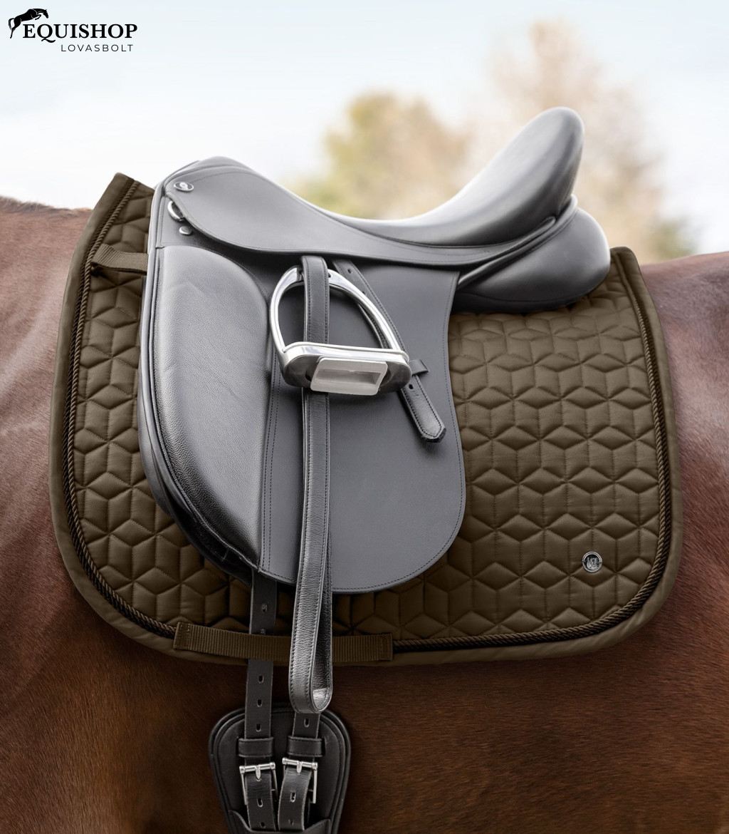 Klasszikus nyeregemelő elegáns és jellegzetes steppelt dizájnnal. A fémlemez és a két díszzsinór tökéletesen kiegészíti a megjelenést. A funkcionális alsó rész optimális lélegzőképességet biztosít. A 10 mm-es habszivacs és a 200 g/m²-es vatelin kiváló nyomáseloszlást garantál. Levehető tépőzáras pántokkal rendelkezik.