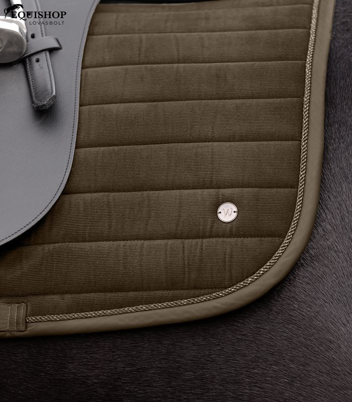 A St. Gallen nyeregalátét stílusos megjelenést kölcsönöz kordbársony anyagának köszönhetően. Csillogó zsinórral és antracit színű fémlemezzel van ellátva. A nyeregalátét belseje optimális légáteresztő képességet biztosít. Választhat egy- vagy osztott hevederpántok közül. A 10 mm-es habszivacs és a 300 g/m²-es vatta kiváló nyomáseloszlást biztosít. Levehető tépőzáras pántokkal rendelkezik.