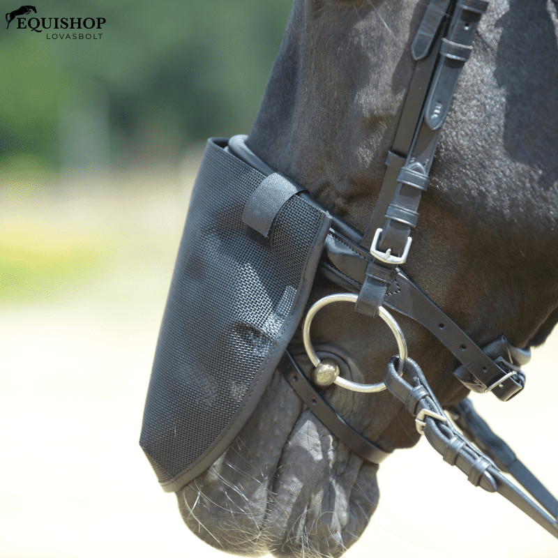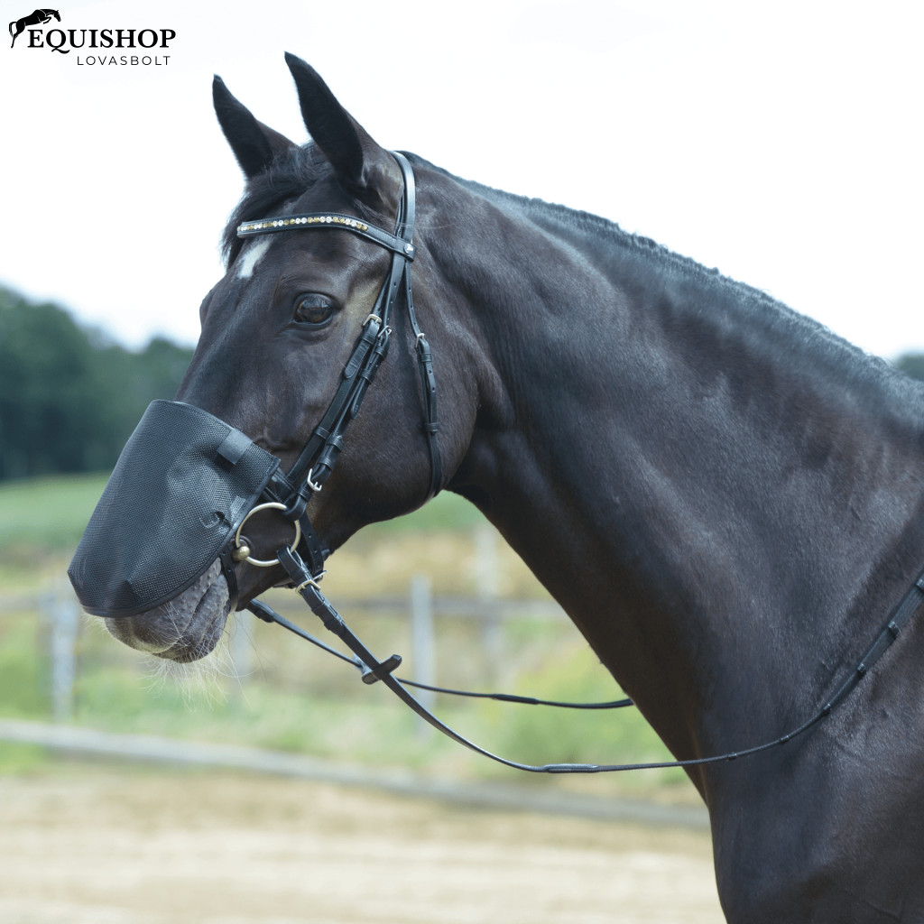 Rugalmas orrvédő merev műanyag hálóból a fejrázás szindróma és a rovarokkal szembeni általános túlérzékenység tüneteinek csökkentésére. kifejezetten angol kombinált vagy angol lovaglótartóval való lovagláshoz kifejlesztve, melynek orrpántjára a háló két tépőzárral rögzíthető.
