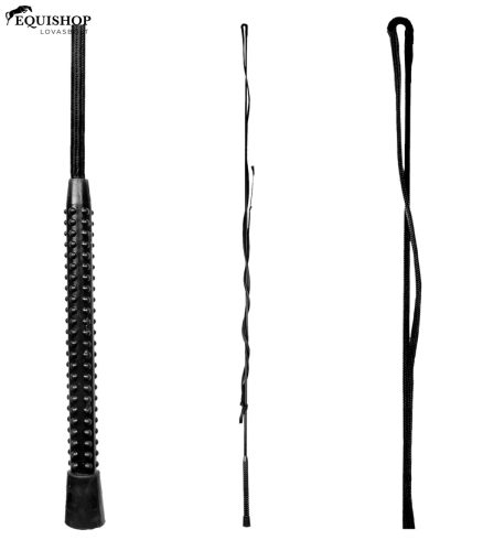 Egyrészes, nejlon borítású, műanyag fogantyúval ellátott ostor. A műanyag fogantyú kényelmesen ül a kézben, és biztonságos és stabil fogást tesz lehetővé.