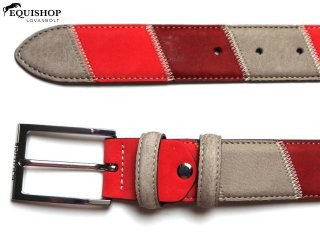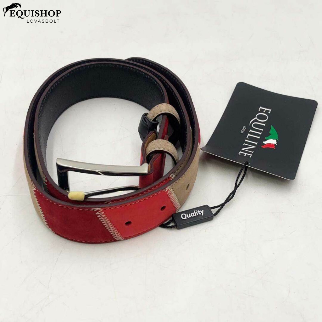 Bőröv patchwork megjelenésben, lézeres logóval az övcsatban. Szélesség: 35 mm