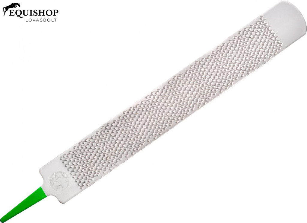 Heller reszelő egy innovatív eszköz, amely 10%-kal szélesebb (49.5 mm), mint a hagyományos reszelők, így nagyobb munkafelületet biztosít a gyorsabb és hatékonyabb munkavégzéshez. Az eszköz kifejezetten a pataápolás és a szaru simává, egyenletessé alakítására lett kifejlesztve.