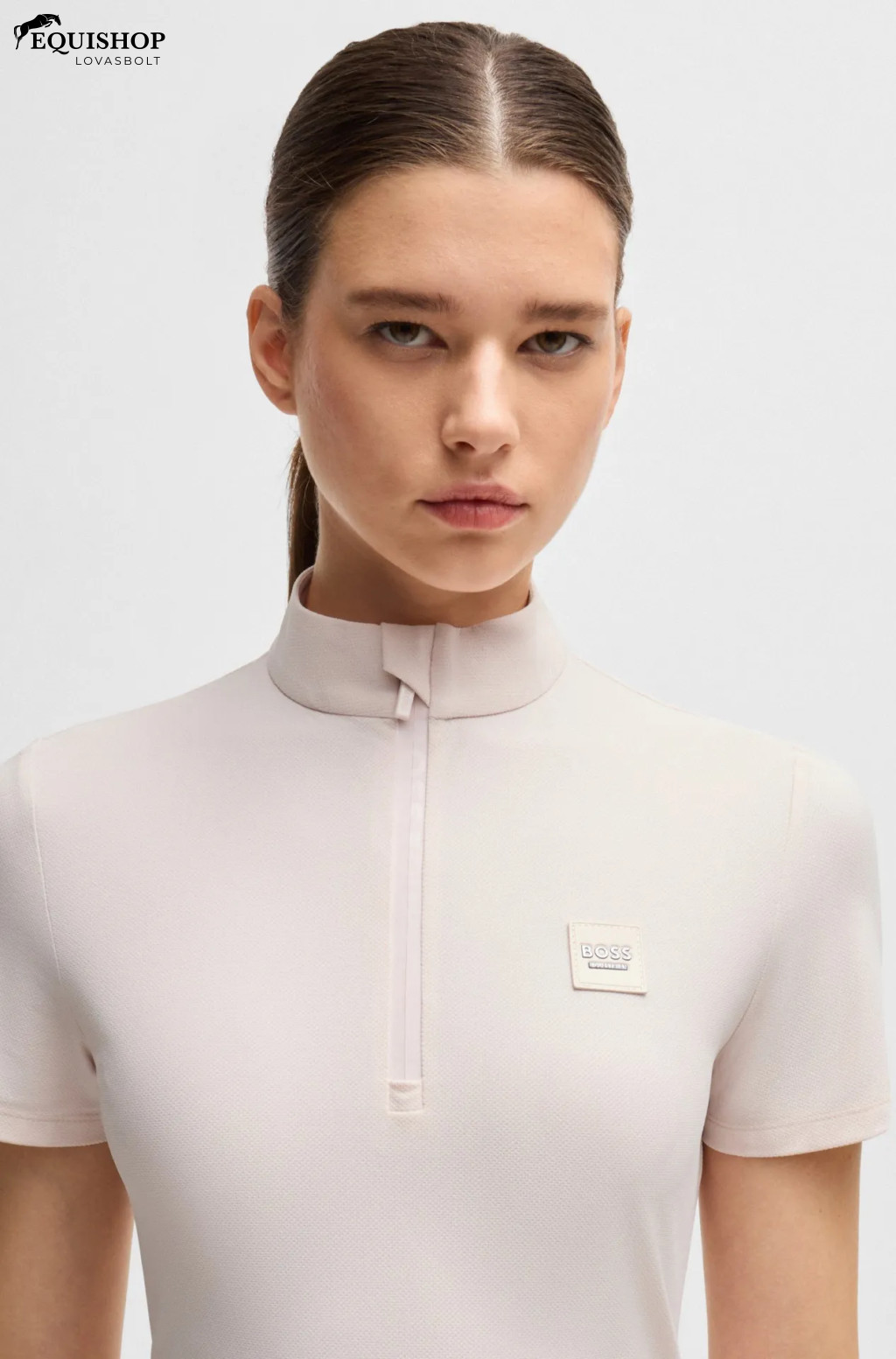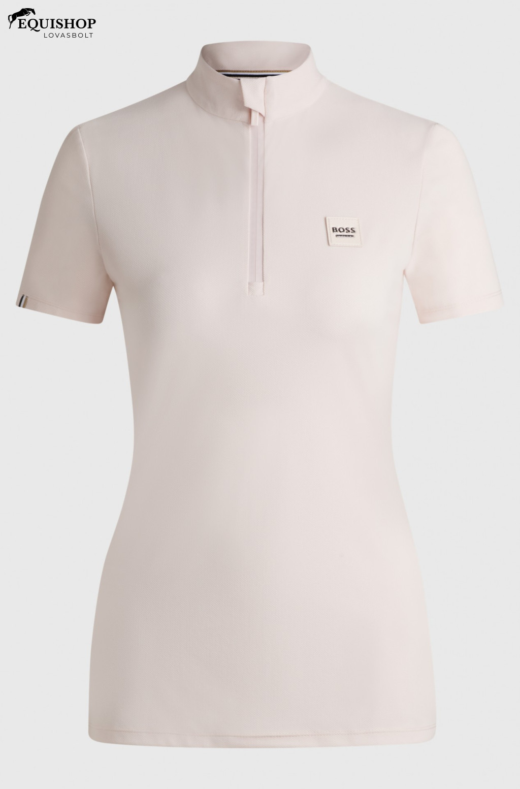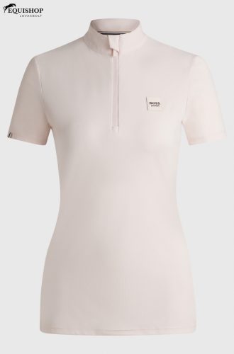 Póló fél ujjal és elöl cipzárral. A cipzár finom tónusú BOSS Equestrian logóval van nyomtatva. A mellkason műbőr folt található BOSS logóval. A Power Sport minőség bordázott megjelenésű, ezért új szerkezetű.