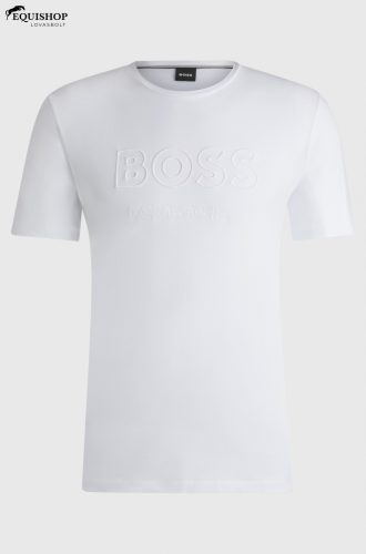 Félujjú logós póló nagy, tónusos hímzéssel a mellkason. Kerek nyakú, szabályos fazon.