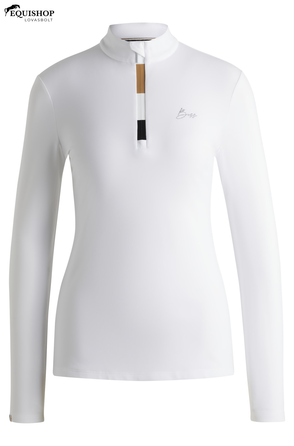 Nagy teljesítményű BOSS versenypóló lovas sportokhoz. Ez az ultrakönnyű, mégis kefélt felső rendkívül rugalmas anyagkeverékből készült, amely lélegző, gyorsan száradó, és maximális kényelmet és mozgásszabadságot biztosít. A színben passzoló cipzár és a kristálylogó kifinomult megjelenést kölcsönöz. 80 PA/ 20 EL