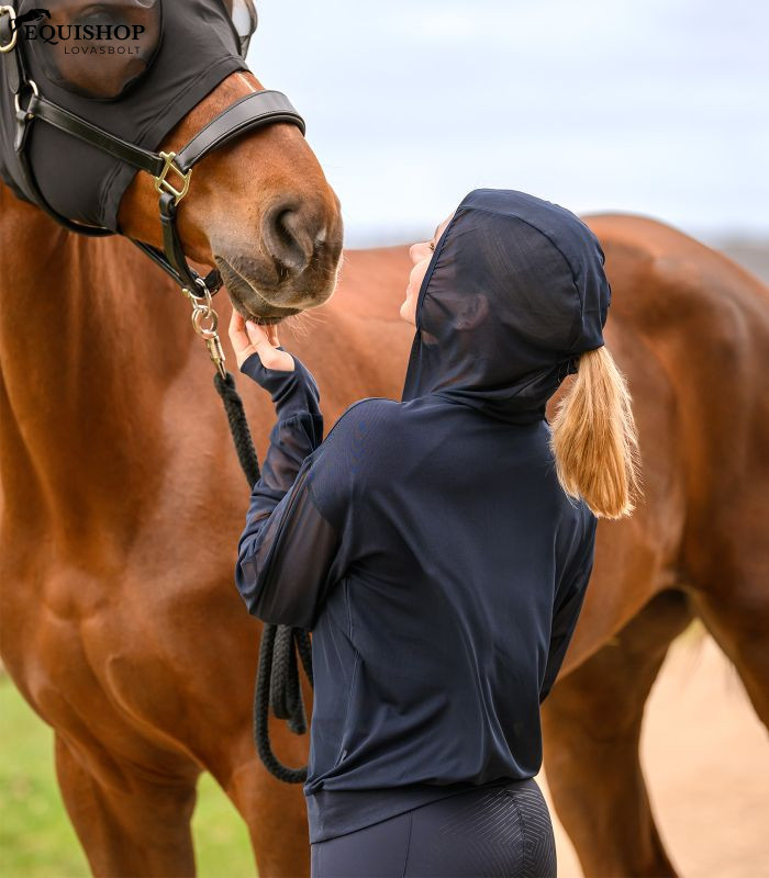 Ultrakönnyű, powermesh anyagú kapucnis pulóver, ideális a legyek elleni védelemre meleg időben
