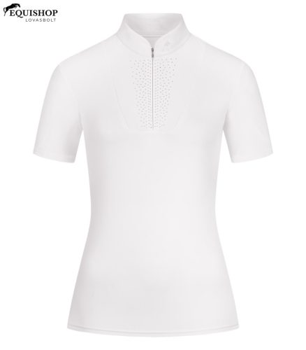 - Funkcionális anyagból készült rövid ujjú versenypóló - Testreszabott fazon - Légáteresztő - Nyakkivágás állógallérral és varrásvékony cipzárral - Elülső betét dekoratív strasszokkal - Csillogó E·L·T logónyomat a galléron és hátul Anyag: 80% poliamid, 20% elasztán