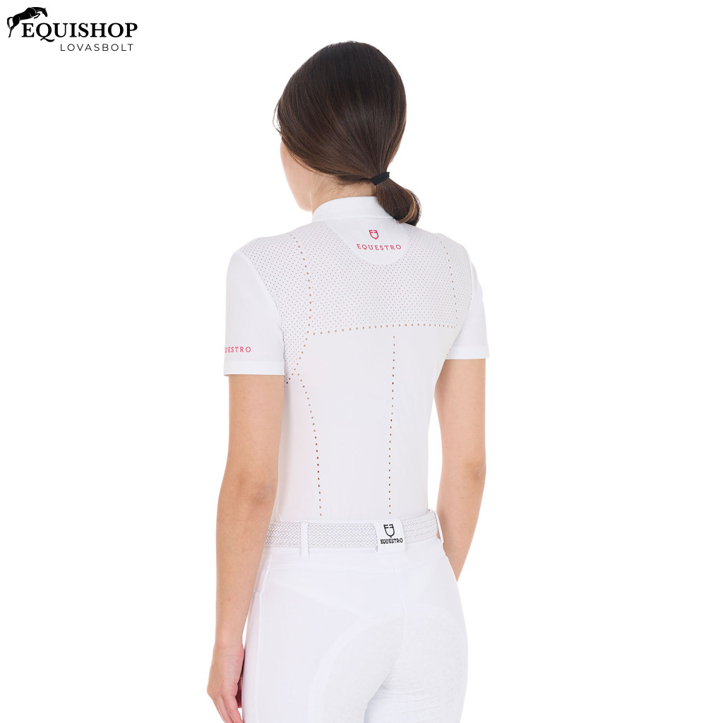 Női karcsúsított póló technikás és perforált anyagból félujjal. Versenyekre és napi edzésre egyaránt tökéletes.