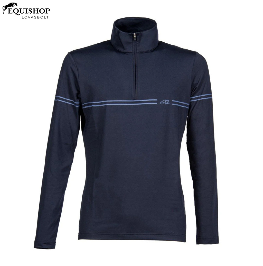 Nemcsak funkcionális, hanem vizuálisan is vonzó: A teljes férfi ingen végigfutó két fekete csík apró figyelemfelkeltő elemként szolgál. Az EQUILINE-ra jellemző három lófej alakú Equiline logó a mellkason és az ujjon található. Elöl cipzárral rendelkezik.