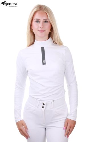 Az Innovatív technikai anyagból készült Enner női hosszú ujjú póló az Equiline -tól, amely a légáteresztő képesség és a rugalmasság keverékét kínálja a nagyobb kényelem érdekében a versenyeken.