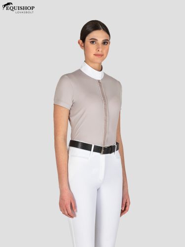 Az Esade rövid ujjú kiegészítő póló kiemelkedik egy árnyalatban passzoló mikroszegecsekkel díszített díszítéssel. A gallér hátulján egy Equiline körvonalas logó található mikroszegecsekben. Ez a póló elegáns kiegészítője a versenygarnitúrádnak. Maximális kényelmet, rugalmasságot és lélegzőképességet kínál.