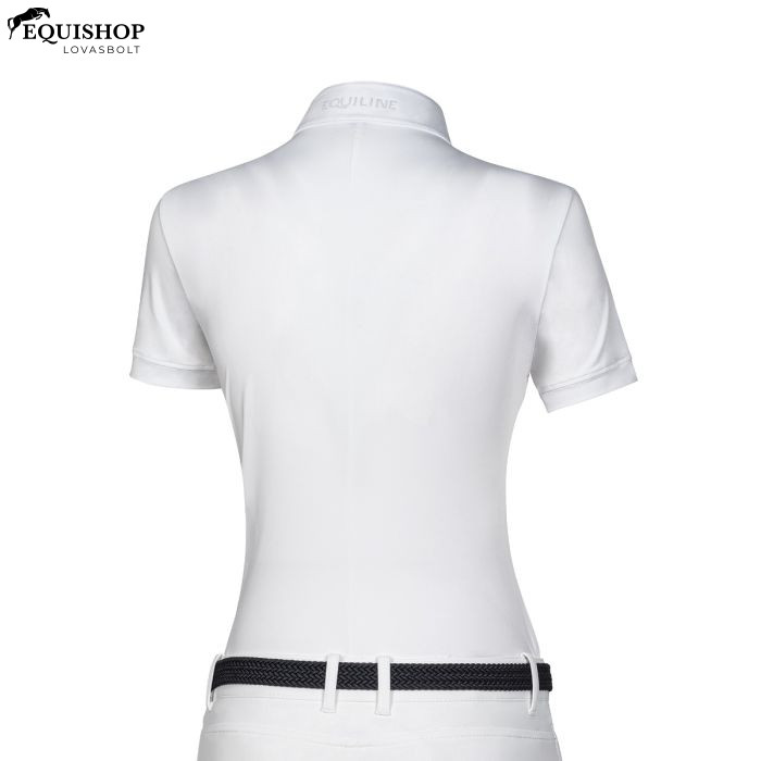 Az Esade rövid ujjú kiegészítő póló kiemelkedik egy árnyalatban passzoló mikroszegecsekkel díszített díszítéssel. A gallér hátulján egy Equiline körvonalas logó található mikroszegecsekben. Ez a póló elegáns kiegészítője a versenygarnitúrádnak. Maximális kényelmet, rugalmasságot és lélegzőképességet kínál.