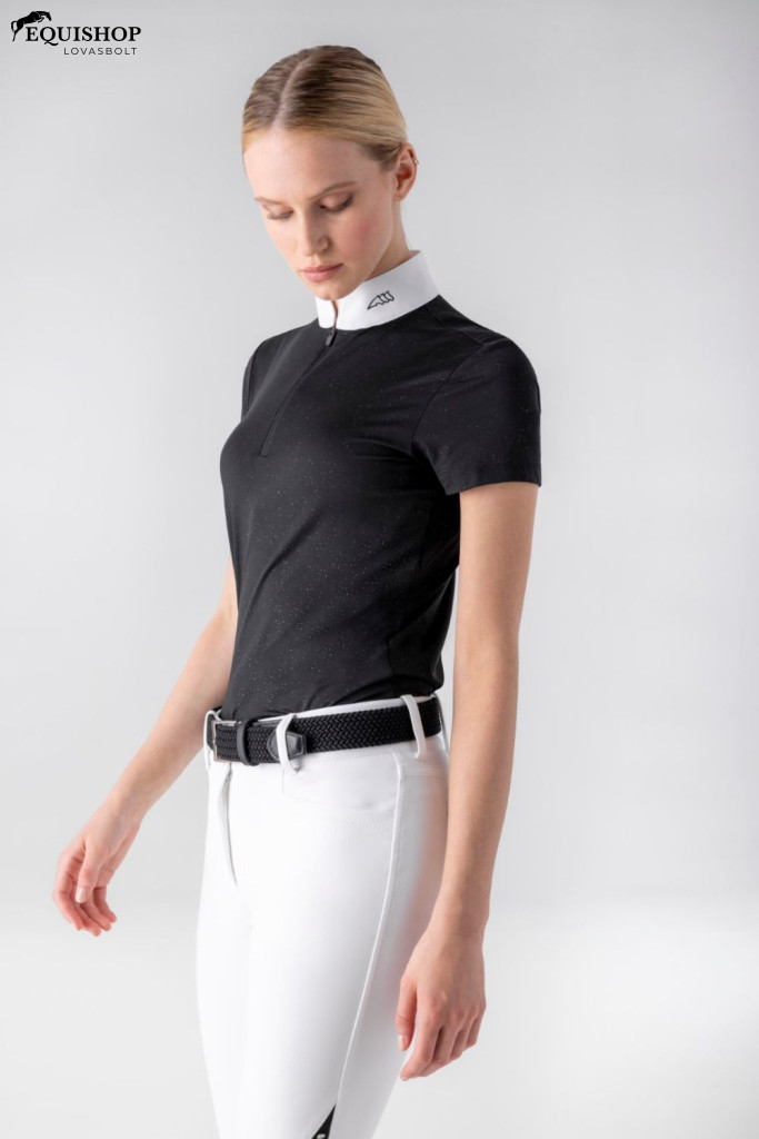 Tapasztalja meg a kényelmet és a csillogást a Gliteg versenyinggel. Ez a szövet nem csak példátlan rugalmasságot, hanem légáteresztő képességet is kínál a luxus viselethez. A félcipzáras elülső nyílás modern megjelenést kölcsönöz, és megkönnyíti a hőmérséklet szabályozását. A befejezést a gallérra nyomtatott fekete csillogó logó adja, amely finom, de stílusos márkajelzést ad. Gyorsan száradó tulajdonságainak köszönhetően mindig készen áll a következő lépésre. Válassza a kényelem és az elegancia tökéletes egyensúlyát ezzel az egyedi ruhadarabbal.