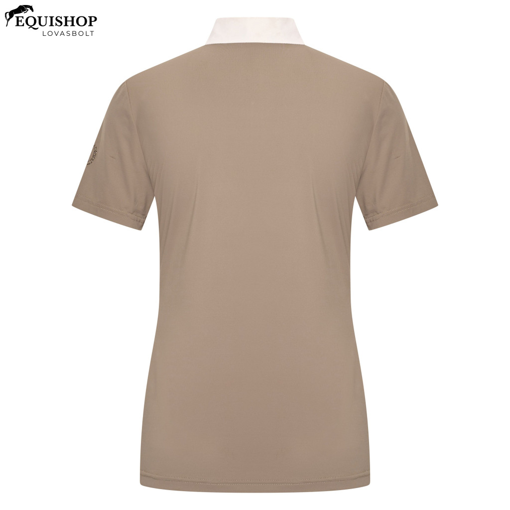 Női Imperial Riding rövid ujjú versenyfelső káprázatos fehér strassz díszítéssel és félcipzárral.