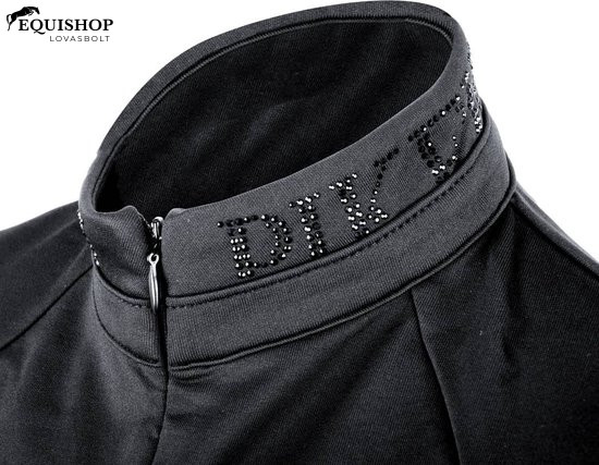 Elegáns strassz díszítés a galléron és a bal alsó szegélyen.