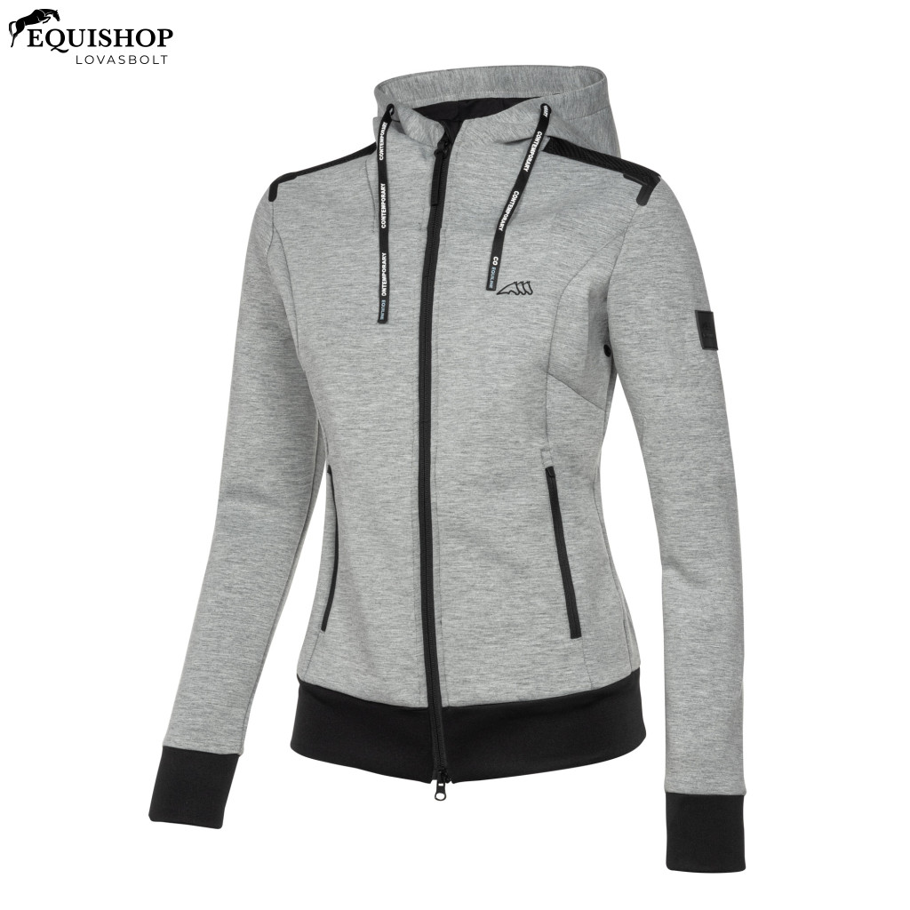 Stílusos, sportos fazonú pulóver cipzárral és csinos kapucnival. Equiline logóval a mellkason és a jobb ujjon. Sima, cipzáras zsebekkel, így könnyedén zsebre tehetjük a mobiltelefonunkat anélkül, hogy elveszítenénk. A vállrészen található fekete szövet stílusos részlet, ugyanakkor rendkívül jól szellőző anyagból készült.