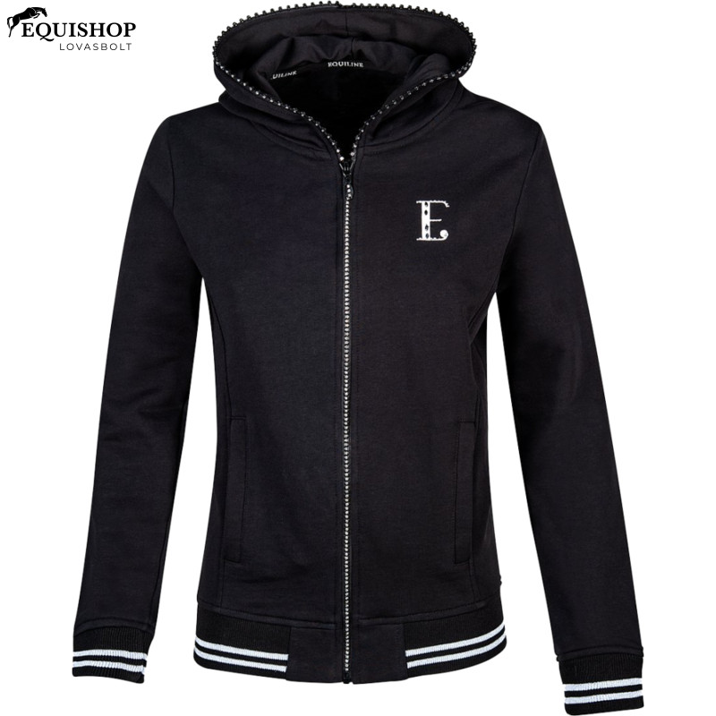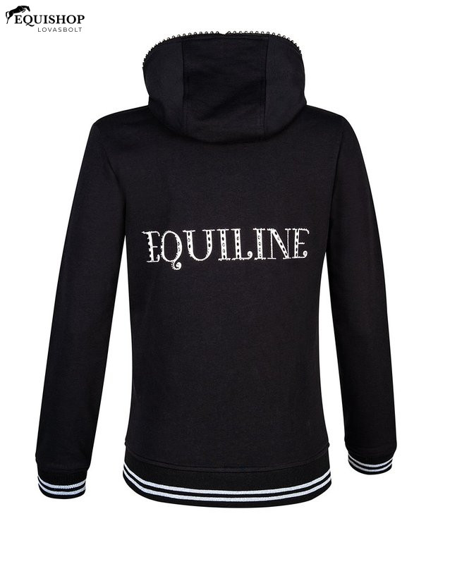 Kényelmes kapucnis pulóver a népszerű Equiline-tól. Csillogó kövekkel a cipzárban. Két zseb elöl és logóval a hátulján.