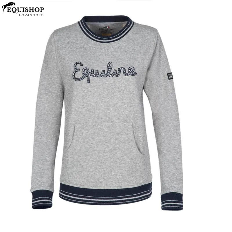 Női Equiline Pacific pulóver kerek nyakkivágással. Jersey kötött anyagból készült, amely puha tapintásáról és tökéletesen esendő. Légáteresztő, nagy elülső zsebbel. A pulóvert az egyik vállán egy kis jelvény, valamint egy nagyméretű, kristályokkal díszített Equiline felirat díszíti.
