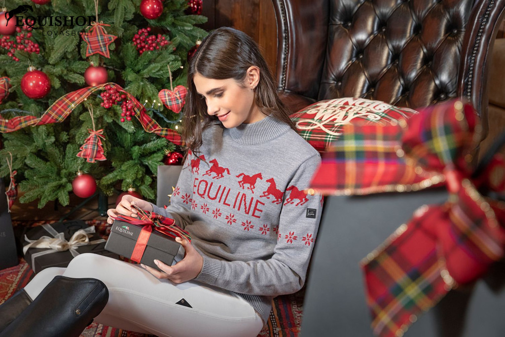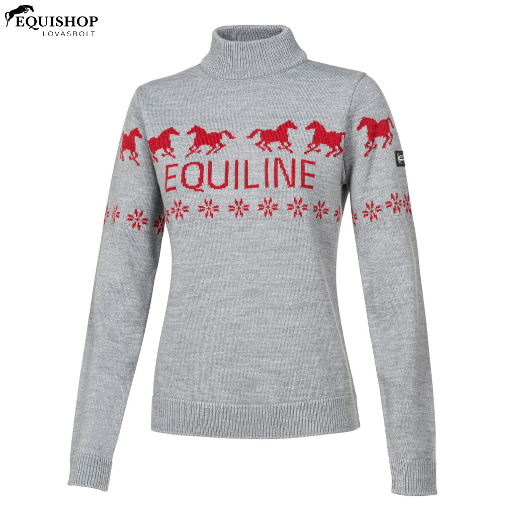 Az Equiline karácsonyi Rudolph női pulóver kötelező darab az ünnepi időszak beköszöntéhez! Puha kötött anyagból készült, és lovas ihletésű, szezonális dizájnnal rendelkezik, így igazán szemet gyönyörködtető megjelenést kölcsönöz. A magas gallér melegen és kényelmesen tart, így a Rudolph pulóver tökéletes választás a hűvösebb karácsonyi idő beköszöntével.