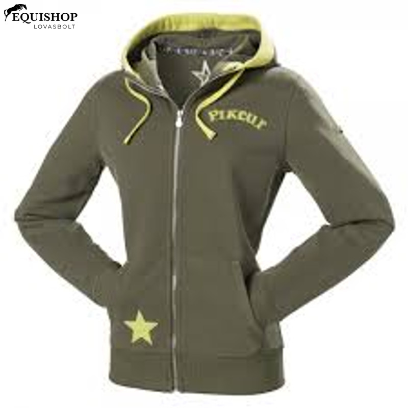A kontrasztos részletek, mint például a csillag, a Pikeur felirat, a húzózsinórok és a kapucni, mind kontrasztos színűek.