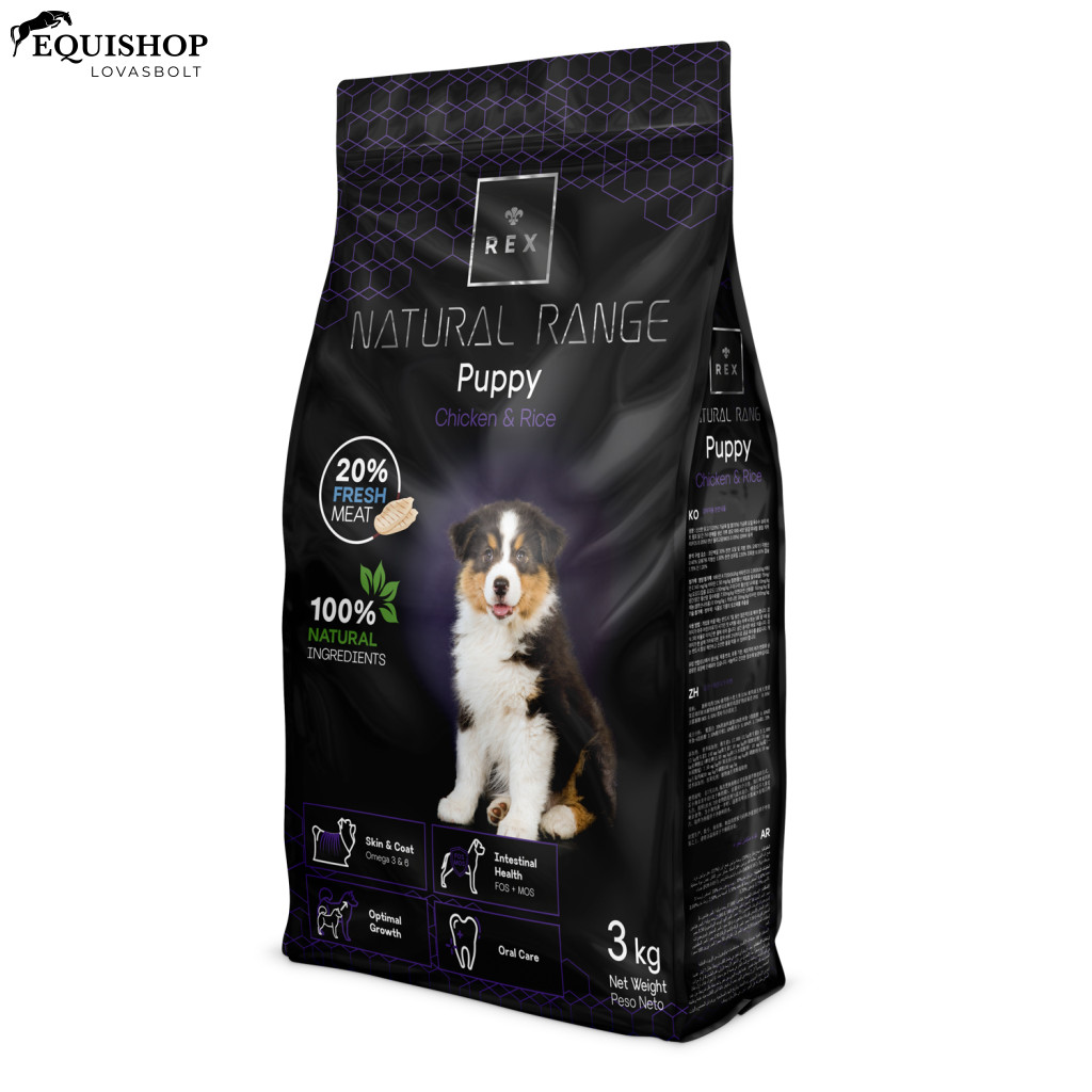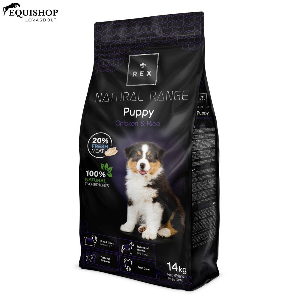 A REX NATURAL RANGE PUPPY a különböző fajtájú kölyökkutyák számára a legoptimálisabb tápanyag-összetételt biztosítja. Etetésével biztos lehet benne, hogy kiskutyájának minden nap teljes és kiegyensúlyozott étrendet biztosít.