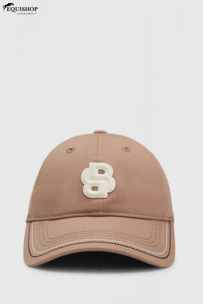Sapka dupla B alakú, kontrasztos színű műbőr folttal.