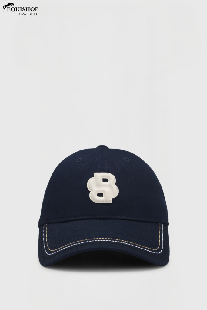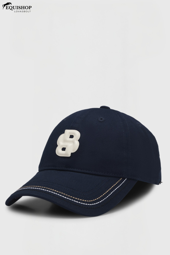 Sapka dupla B alakú, kontrasztos színű műbőr folttal.