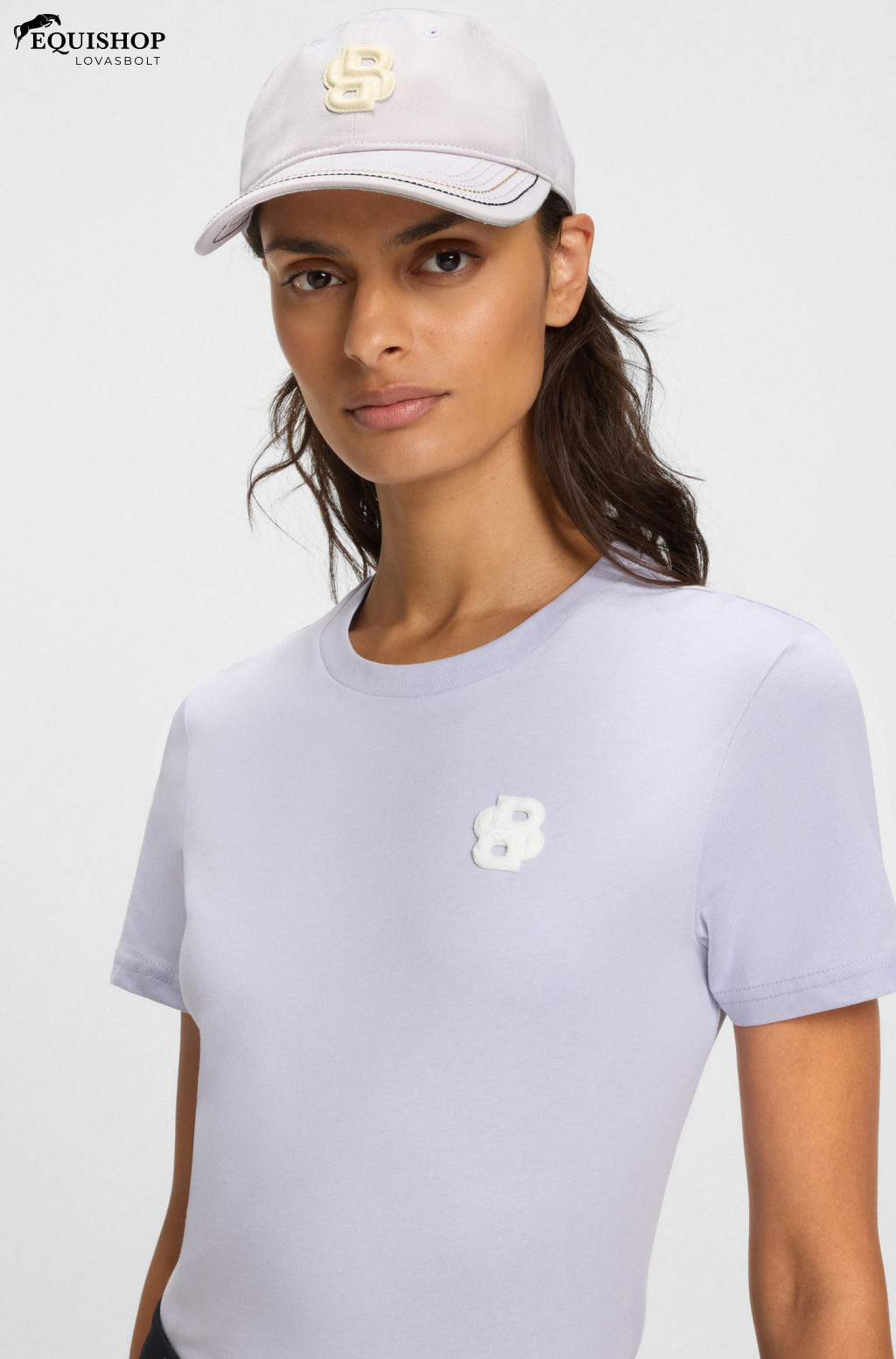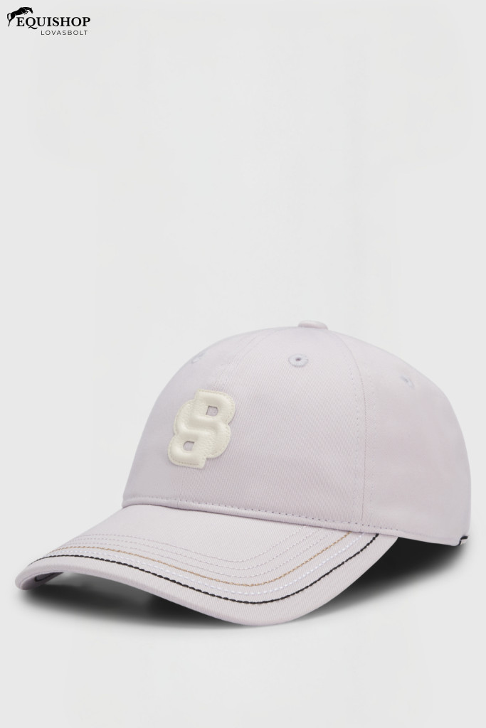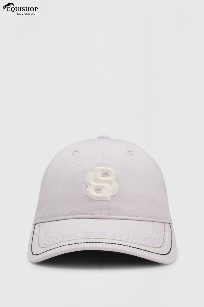 Sapka dupla B alakú, kontrasztos színű műbőr folttal.