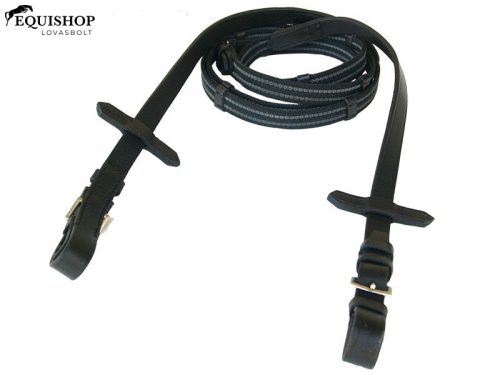 Puha fogású gurtniból és jó minőségű marhabőrből készült lovagló kantárszár rozsdamentes csatokkal, a gurtni részen két gumicsíkkal átszőve,hogy a szár jobban tapadjon. Szárstoppal ellátva.