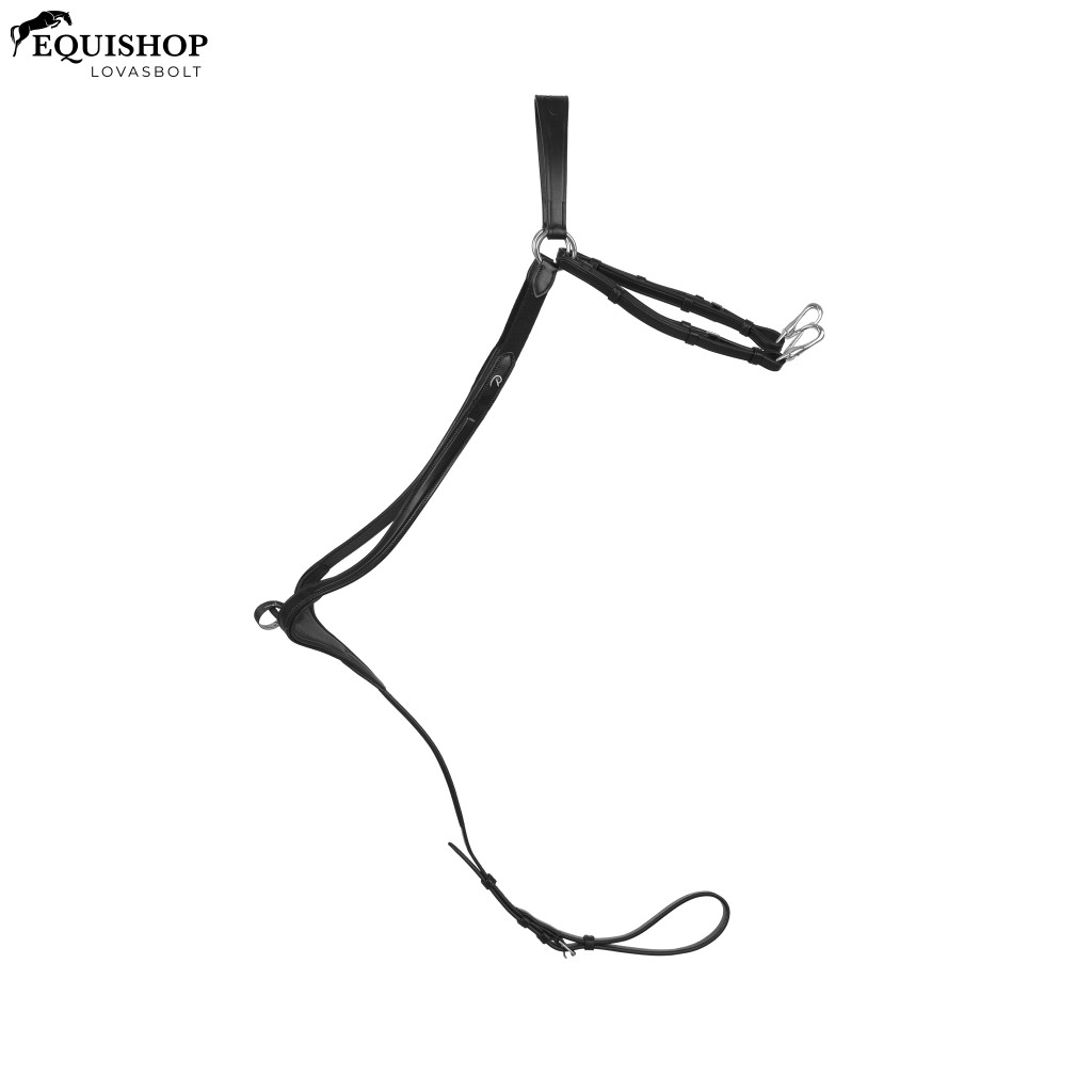 Dy’on bőrből készült, amely a puha tapintásáról és tartósságáról ismert. Minden részlet gondosan meg lett tervezve: a fő karika rögzítési pontot biztosít a martingál számára, míg a kisebb D-karikák különféle segédszárak csatlakoztatására alkalmasak, így ez a szügyelő rendkívül sokoldalú. A „bridge” kialakítás nemcsak egyenletesen osztja el a terhelést a vállakon, hanem megakadályozza, hogy a szügyelő lecsússzon, így lovaglás közben végig stabil és esztétikus pozícióban marad.