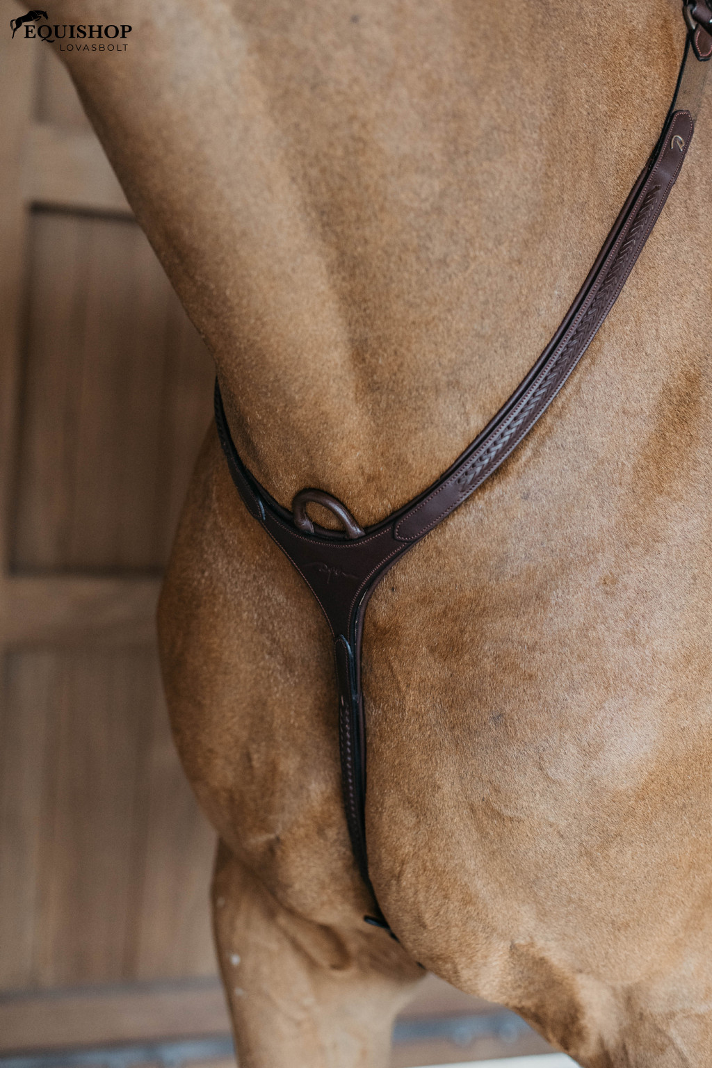 Kényelem és elegáns megjelenés egyben. Ez a szügyelő 3 rögzítési ponttal rendelkezik, hogy a nyerget stabilan a helyén tartsa. A bőr fogantyúhoz könnyedén csatlakoztatható a martingál.