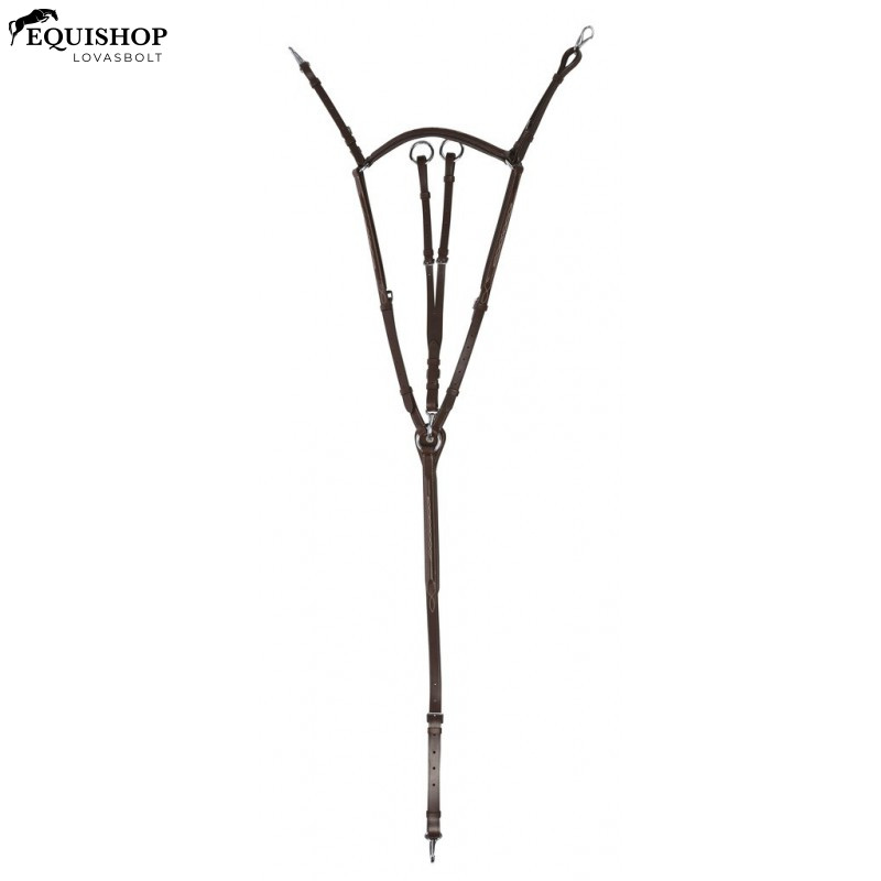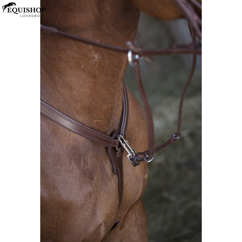 Szügyelő martingállal, dekoratív varrással. Rozsdamentes acél csatok.