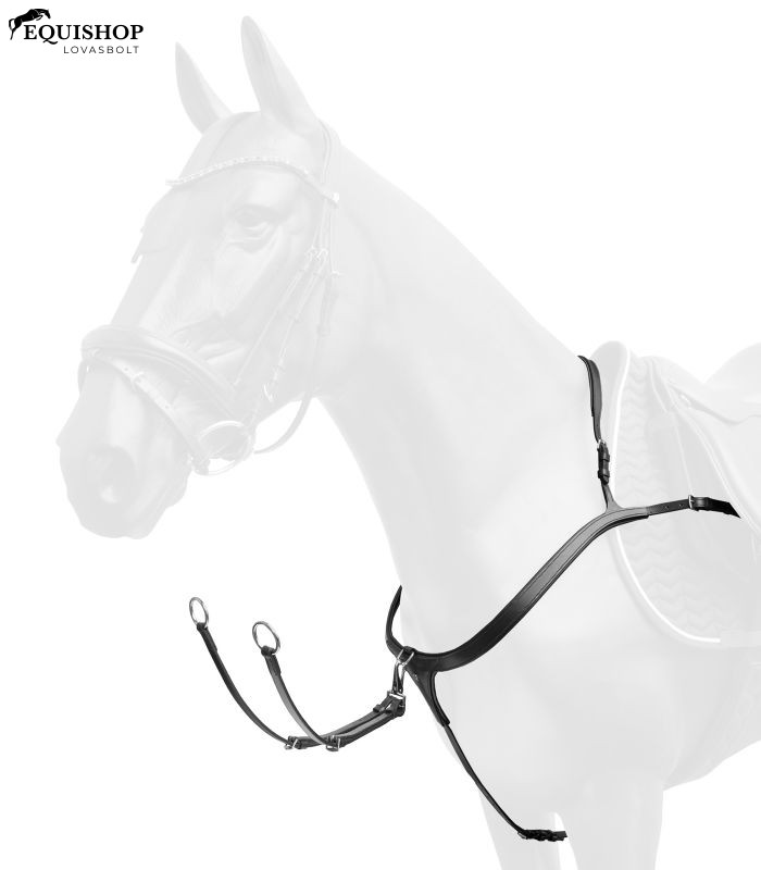 Kiváló minőségű szügyelő anatómiai kivágással – optimális stabilitás és mozgásszabadság. A Waldhausen X-Line szügyelő hosszú híddal és mély 3 ponttal megakadályozza a nyereg megcsúszását anélkül, hogy zavarná a lovat. Az anatómiai szabás lehetővé teszi a váll korlátlan mozgási szabadságát, ugyanakkor optimális tartást biztosít a nyeregnek. Három ponton rögzíthető: A nyereg hevederén állítható bőrpánttal és a hevedereken, ahol rugalmas betétek biztosítják a maximális kényelmet. A szügyelő a ló stabilitását és kényelmét egyesíti, és optimális illeszkedést biztosít edzés közben.