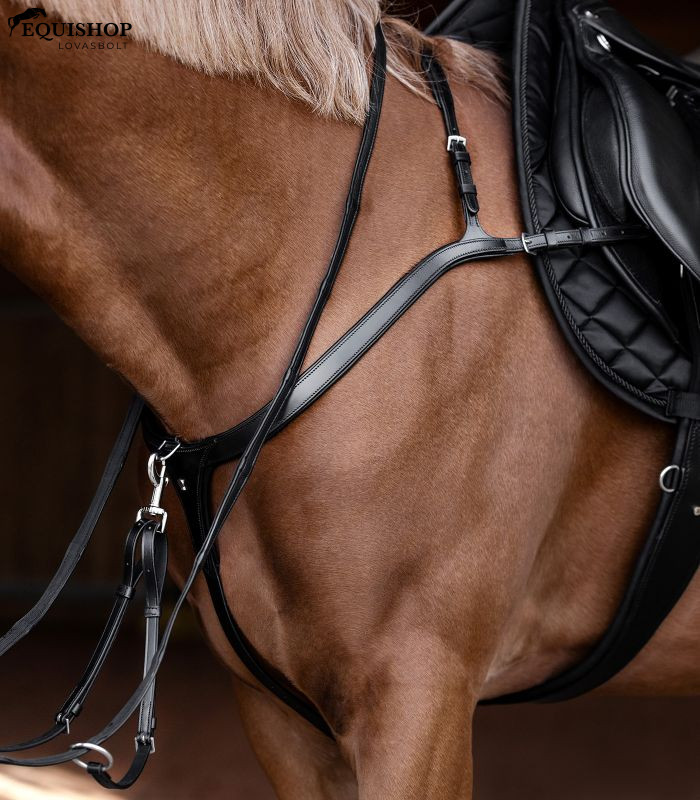 Kiváló minőségű szügyelő anatómiai kivágással – optimális stabilitás és mozgásszabadság. A Waldhausen X-Line szügyelő hosszú híddal és mély 3 ponttal megakadályozza a nyereg megcsúszását anélkül, hogy zavarná a lovat. Az anatómiai szabás lehetővé teszi a váll korlátlan mozgási szabadságát, ugyanakkor optimális tartást biztosít a nyeregnek. Három ponton rögzíthető: A nyereg hevederén állítható bőrpánttal és a hevedereken, ahol rugalmas betétek biztosítják a maximális kényelmet. A szügyelő a ló stabilitását és kényelmét egyesíti, és optimális illeszkedést biztosít edzés közben.