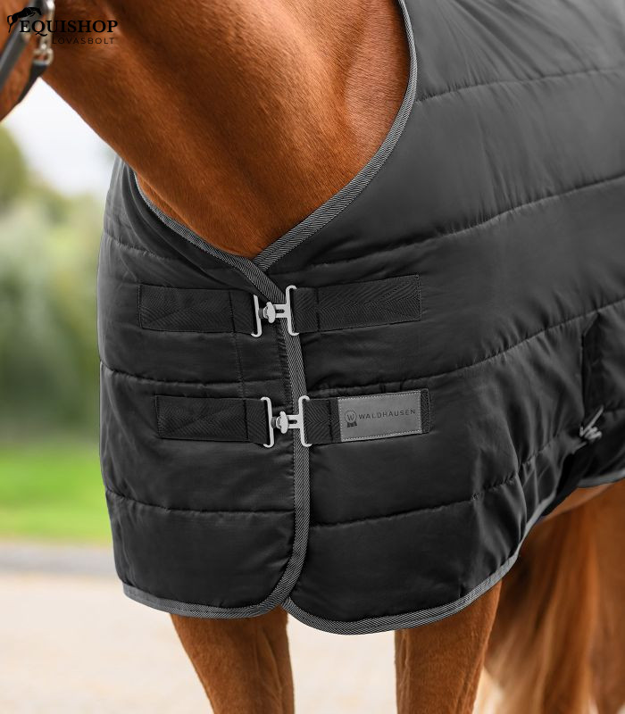 A gazdaságos 100 g-os istállótakaró megbízható meleget és kivételes kényelmet biztosít a mindennapi istállóhasználathoz. A légáteresztő 420 denier poliészter rendkívül strapabíró, és kellemes, száraz istállóklímát biztosít. A dupla T-elülső rögzítés tépőzárral alul, az állítható keresztpántok és a masszív farokzsinór garantálja a biztonságos és stabil illeszkedést. Ezenkívül a takaró hátsó lábpántok rögzítésére szolgáló eszközzel is rendelkezik. Klasszikus, funkcionális kialakításával ötvözi a tartósságot, a kényelmet és a praktikumot. Ideális mindennapi használatra.