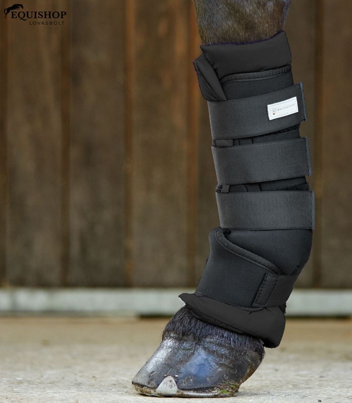 Praktikus istállólábvédő kiváló minőségű külső védőfóliával és kivehető tépőzáras bandázzsal. Az anatómiai forma és a négy erős tépőzár optimális tartást biztosít a ló lábának.