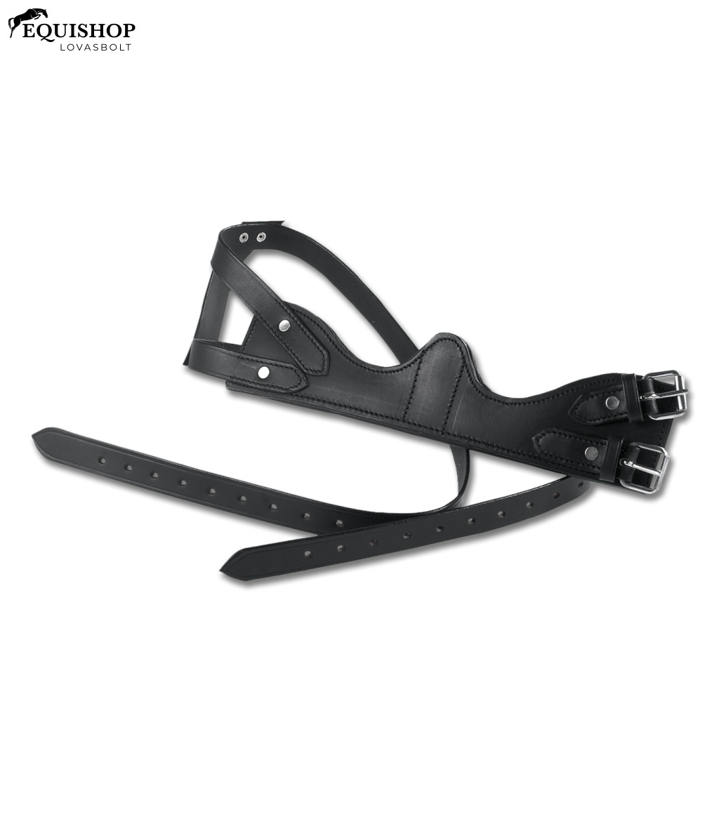 Optimális hatás a tökéletes illeszkedés révén. Az anatómiailag kialakított terület a ló torka alatt fekszik, hogy megakadályozza a rágást. Kiváló minőségű bőr, jól kidolgozott és lágyan párnázott a torokban. Két csík lehetővé teszi az egyéni beállítást szinte minden lótípushoz.