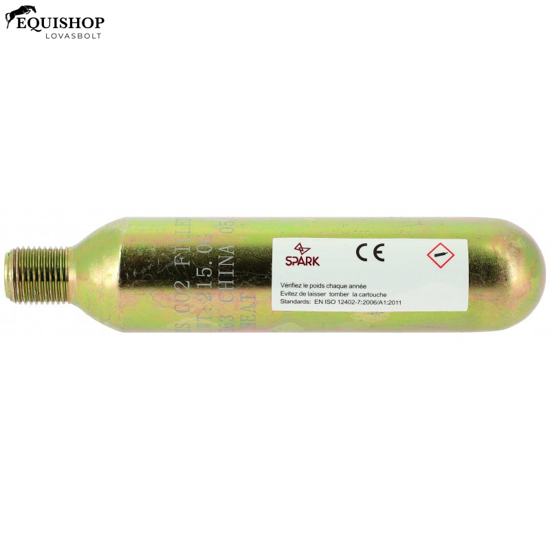 Spark légzsákos mellény viselése után esés után a patront ki kell cserélni. A használt patron biztonságosan kicsavarható. A mellényt újra kell beállítani. Spark CO² patron hegesztett tömítéssel.