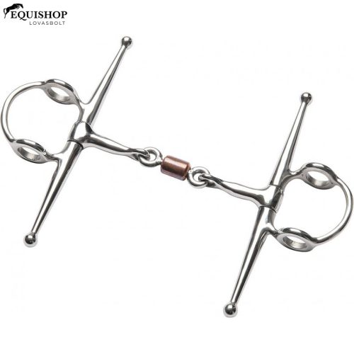 Rozsdamentes acél középső rézgörgővel és vékony szájrésszel. Szájdarab vastagsága: 11 mm, orcák hossza: 185 mm, szájrész: tömör