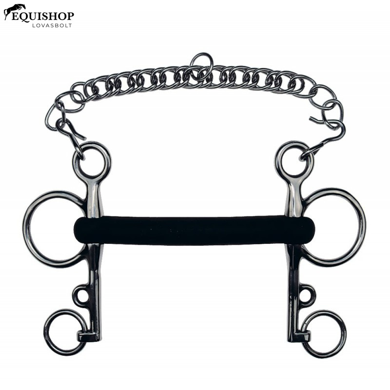 Rozsdamentes acél. Gumi borítású vastag szájrész. Szájdarab vastagsága: 21 mm, merev, szájrész: tömör
