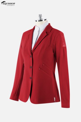 Női ultrakönnyű versenykabát hálóból, belső cipzárral és fekete gumírozott külső gombok. Swarovski logó a bal vállon. A „Star” Piquet-tel készült ruhák könnyűek.