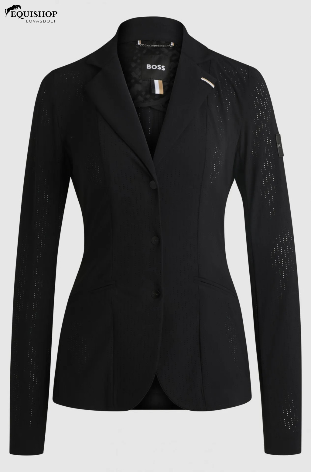 BOSS versenykabát hálós anyaggal. Ultra könnyű és tökéletes viselet bármilyen légzsák alatt. A zakó elöl rejtett cipzárral és 3 BOSS logóval ellátott pattintással rendelkezik. A BOSS logóval ellátott műbőr folt a bal felkarra van varrva, a gallér pedig a BOSS aláírás csíkkal van rögzítve.