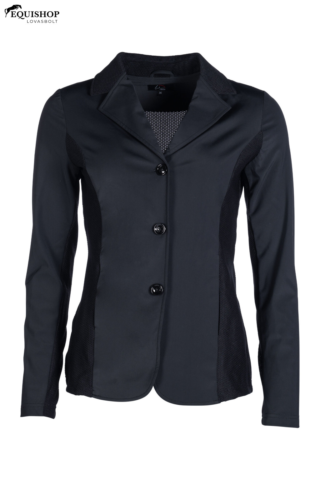 A Hunter Woman versenykabát elegáns, testreszabott szabással és funkcionális részletekkel nyűgöz le a maximális kényelem érdekében. A légáteresztő hálószövetből készült, stratégiailag elhelyezett betétek optimális szellőzést biztosítanak, míg a gombzár mögötti rejtett cipzár tökéletes illeszkedést garantál. Mivel nagyon rövidre van vágva, különösen alkalmas díjugrató versenyekre.