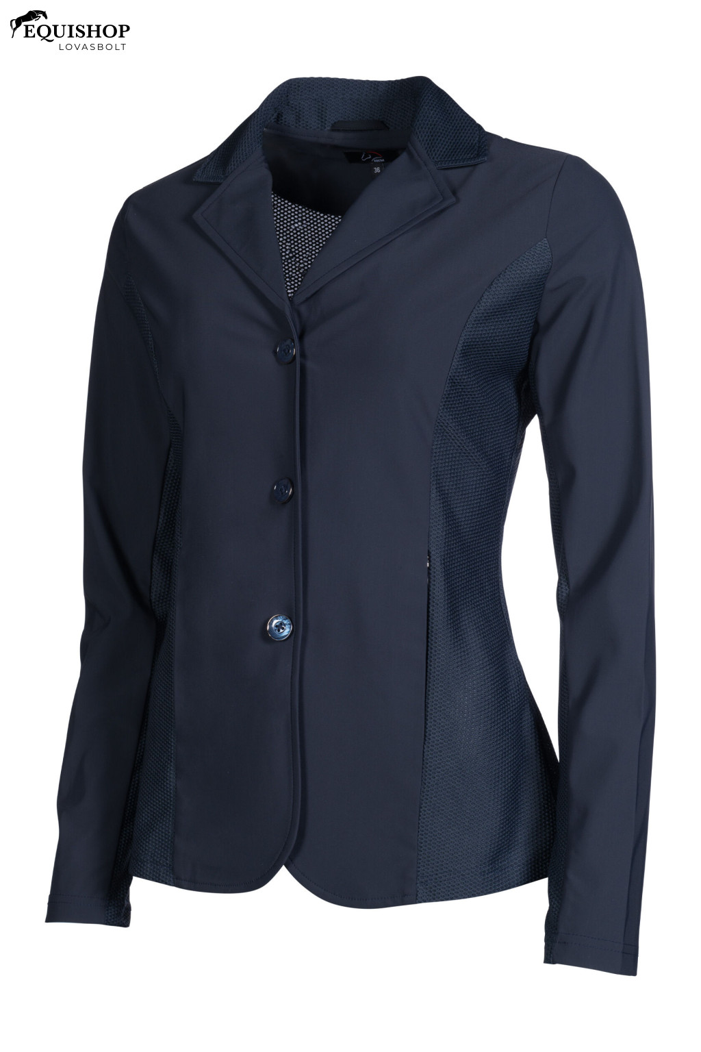 A Hunter Woman versenykabát elegáns, testreszabott szabással és funkcionális részletekkel nyűgöz le a maximális kényelem érdekében. A légáteresztő hálószövetből készült, stratégiailag elhelyezett betétek optimális szellőzést biztosítanak, míg a gombzár mögötti rejtett cipzár tökéletes illeszkedést garantál. Mivel nagyon rövidre van vágva, különösen alkalmas díjugrató versenyekre.