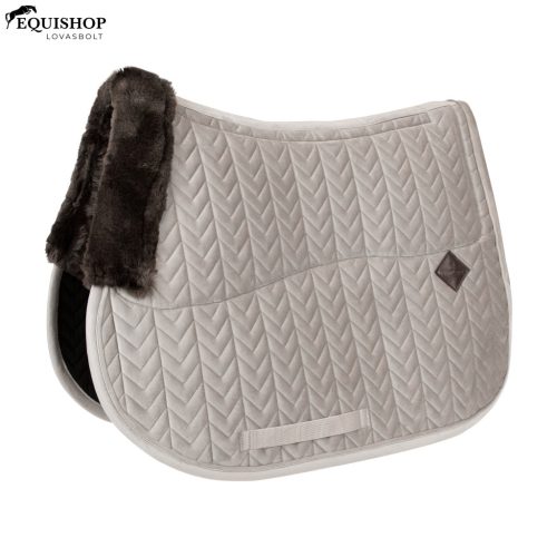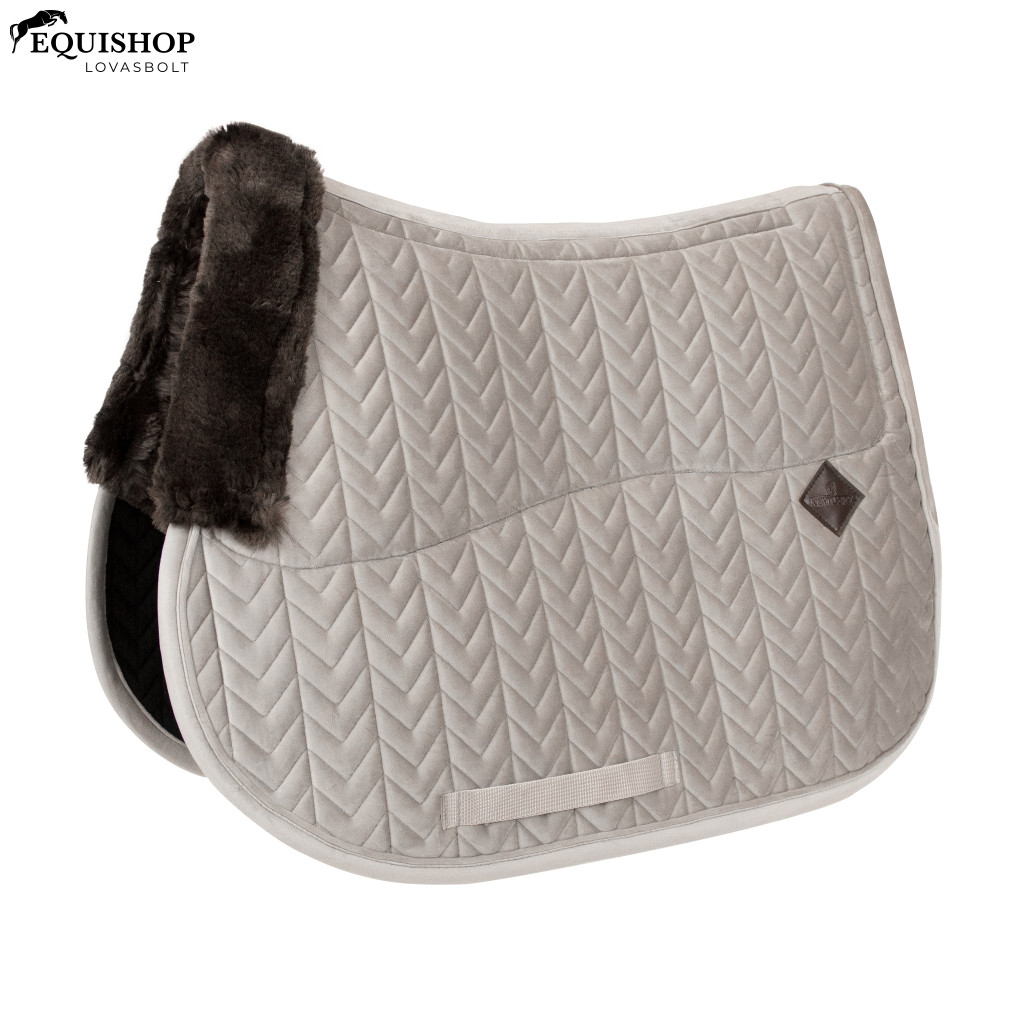 A nyeregtartó marja és hátulja vegán báránybőrrel bélelt. Ez kiváló párnázottságot biztosít, és megakadályozza a ló hátán való dörzsölődést. Az érzékeny bőrű lovak számára ez különösen kényelmes. A nyeregtartó külső része puha bársony anyagból készült. A nyeregtartó stílusos halszálkamintás steppeléssel van ellátva.