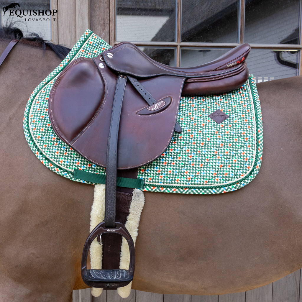 A bársony nyeregalátét Pied-de-Poule díjugrató lovaglóknak szuper stílusos és elegáns, dupla csavart szegéllyel. Pied-de-poule mintával rendelkezik.