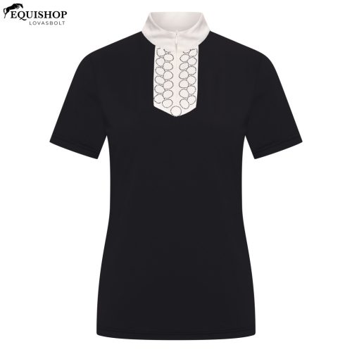 Női Imperial Riding rövid ujjú versenyfelső káprázatos fehér strassz díszítéssel és félcipzárral.